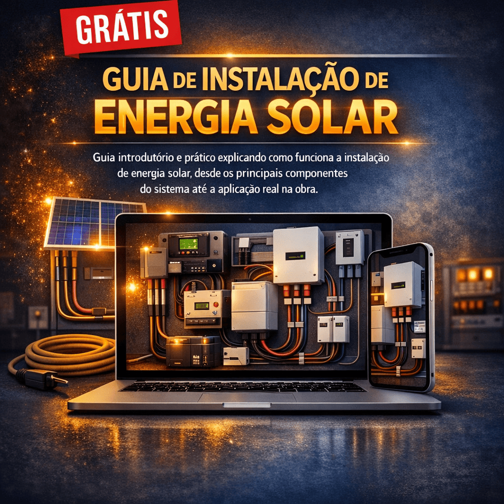 Guia introdutório e prático explicando como funciona a instalação de energia solar, desde os principais componentes do sistema até a aplicação real na obra.